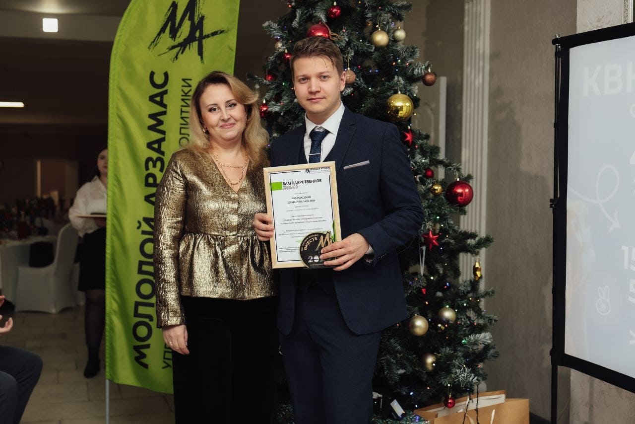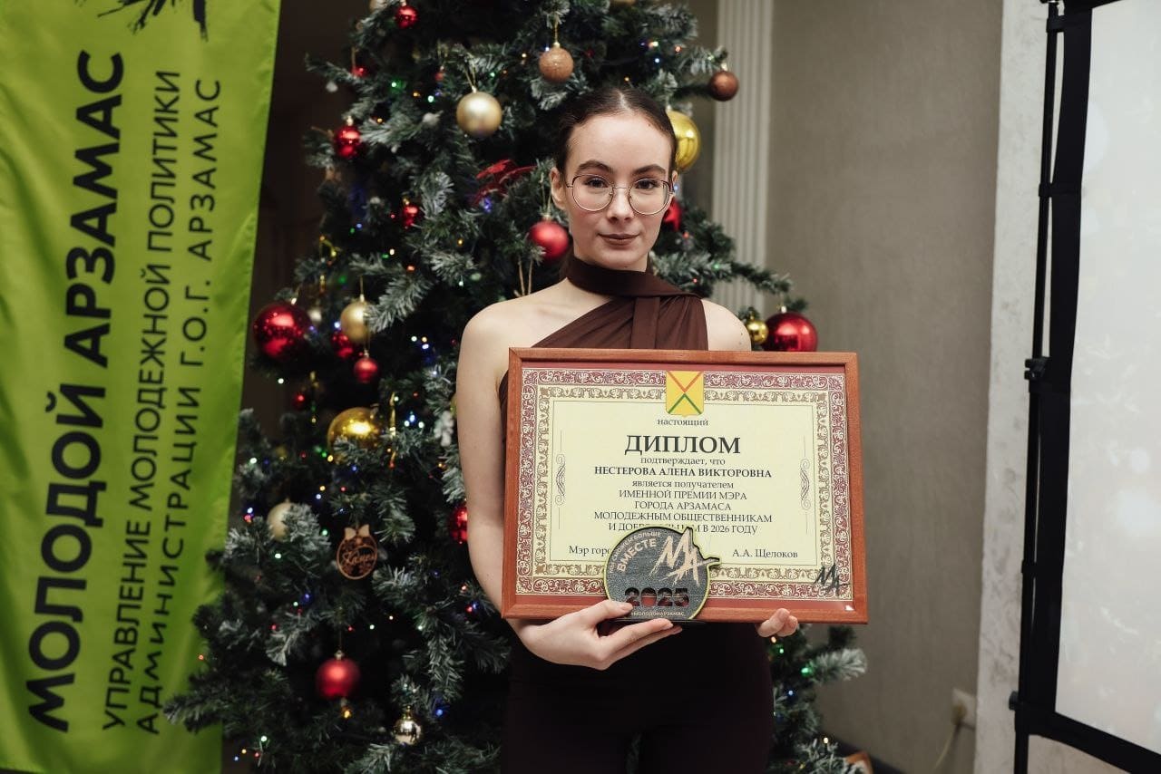 Премию мэра Арзамаса молодежным общественникам и добровольцам на 2026 год завоевали Алёна Нестерова (группа АСПМ 22-1) и Никита Курлыков (группа МА 24Р, инженер-технолог Рикор Электроникс) – за активную гражданскую позицию и вклад в добровольческое движение.