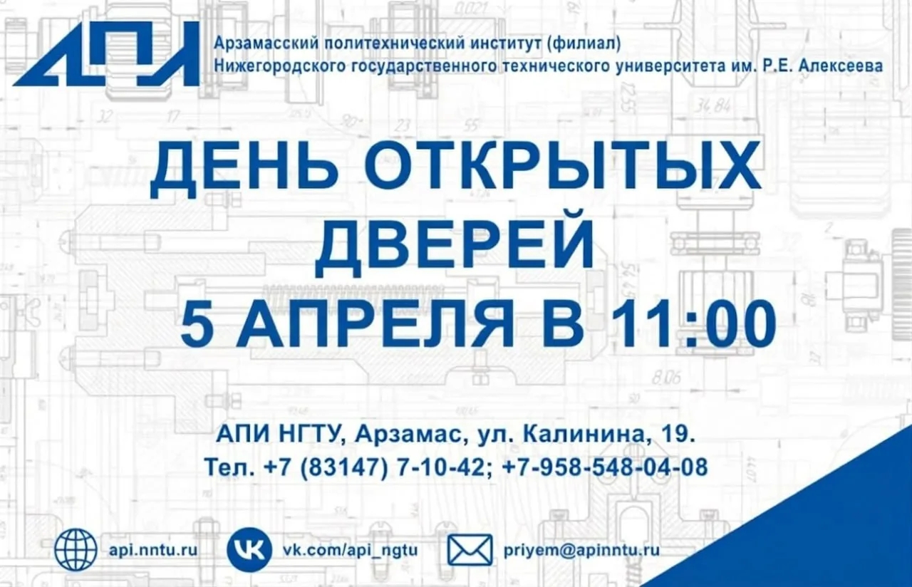 Уже в ближайшее воскресенье 5 апреля в 11 часов в Арзамасском политехническом институте Нижегородского государственного технического университета им. Р.Е. Алексеева состоится День открытых дверей.