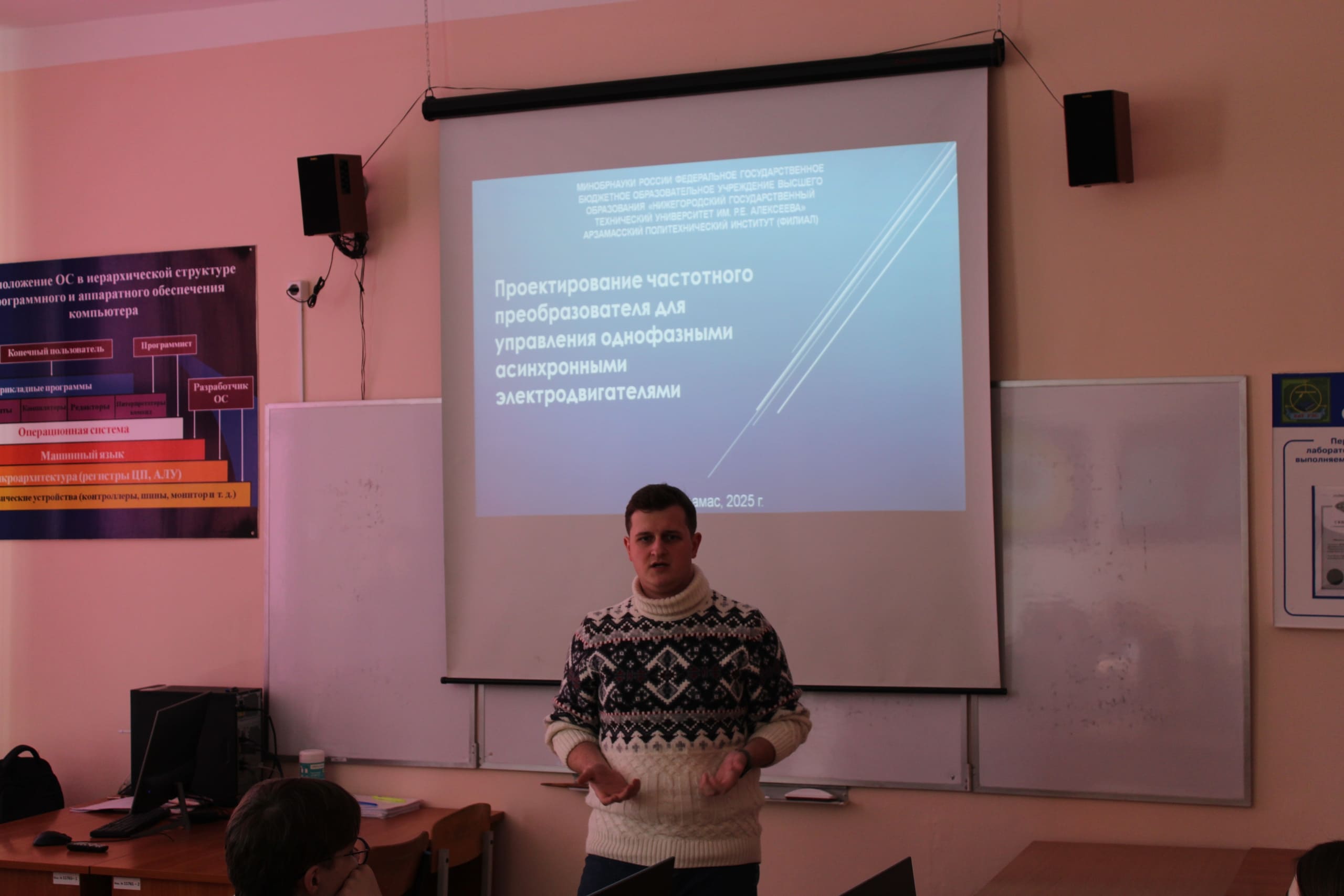 Ассистент кафедры Кирилл Сергеевич Сычёв подробно остановился на направлении подготовки, связанном с проектированием радиоэлектронных средств. Ребята узнали, что студенты учатся: