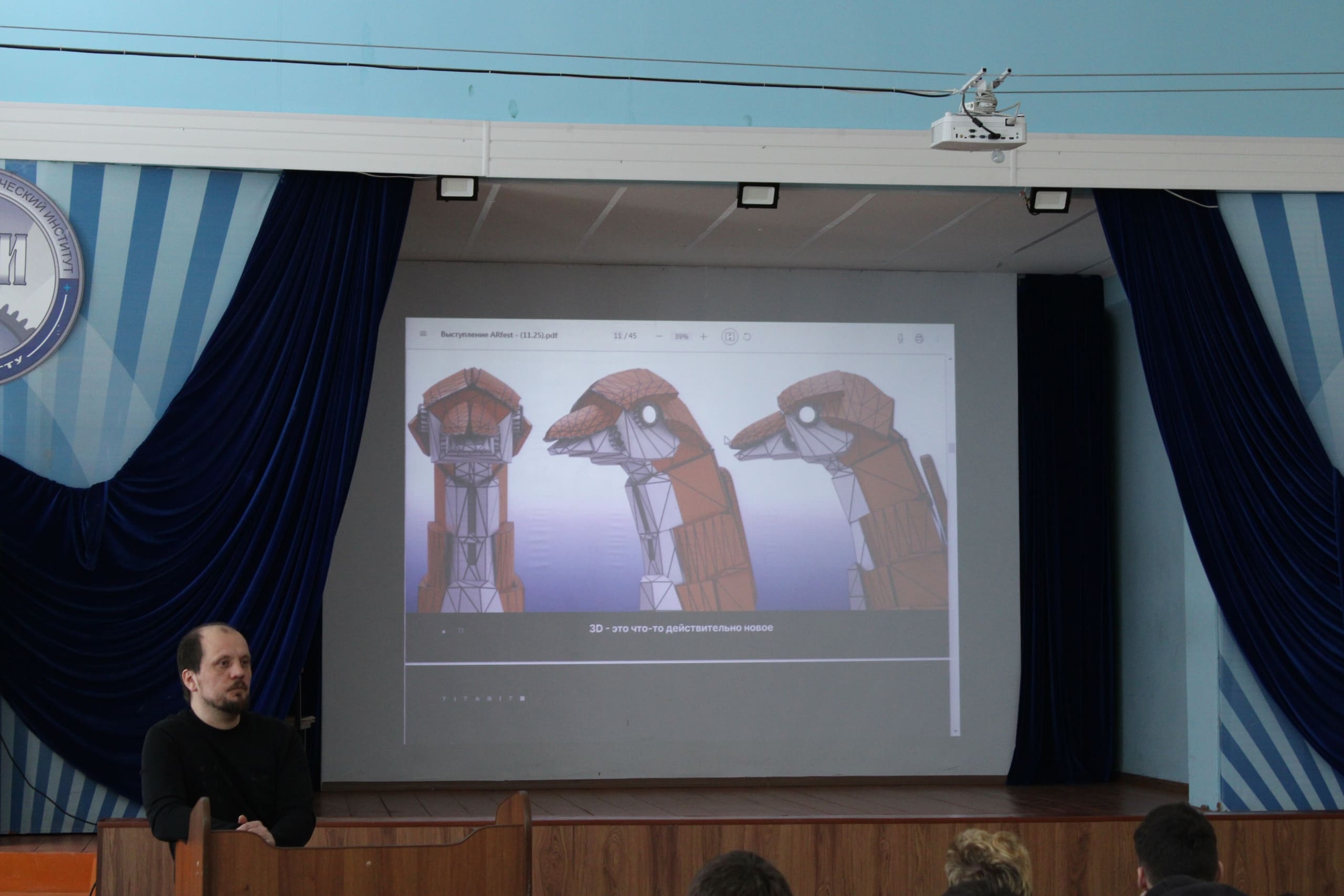 В Арзамасском политехническом институте Нижегородского государственного технического университета им. Р.Е. Алексеева прошел семинар на тему IT-технологий от генерального директора компании «Титабит» Дмитрия Владимировича Яшина. Компания занимается разработкой программного обеспечения и приложений с применением виртуальной, дополненной реальности, для интерактивных поверхностей или комнат.