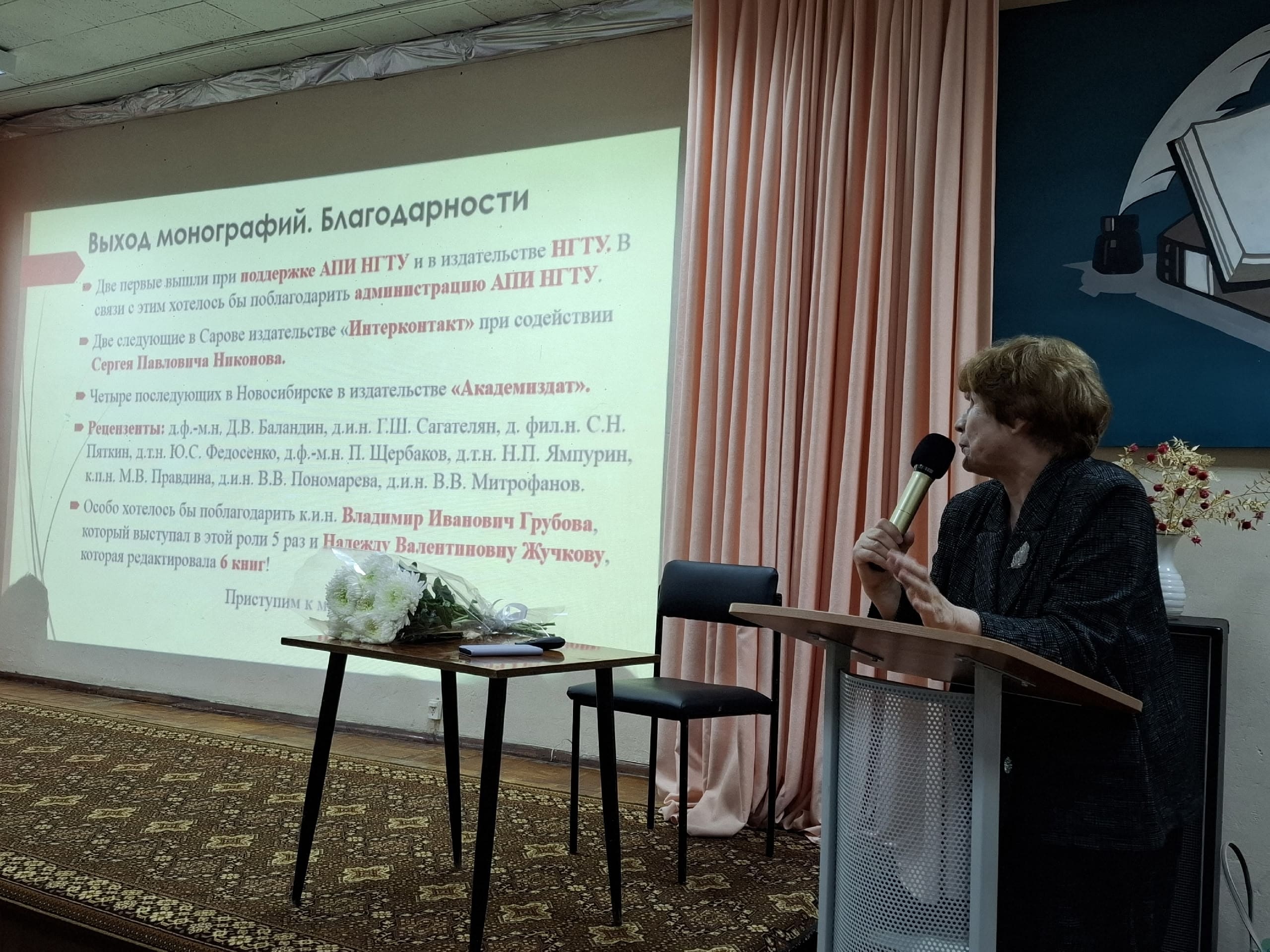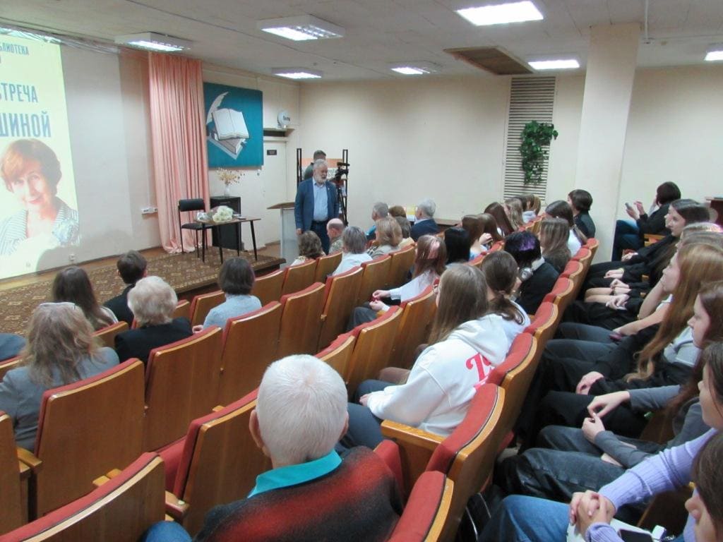 В актовом зале ЦГБ внимательно слушали докладчицу ее коллеги из АПИ НГТУ и Аф ННГУ, студенты и школьники, писатели и поэты, в том числе член Российского союза писателей В.Г. Климов, выпускник кафедры АПУ Аф МАИ, автор многих романов и повестей, лауреат Национальной литературной премии «Писатель года» (2023 г.).