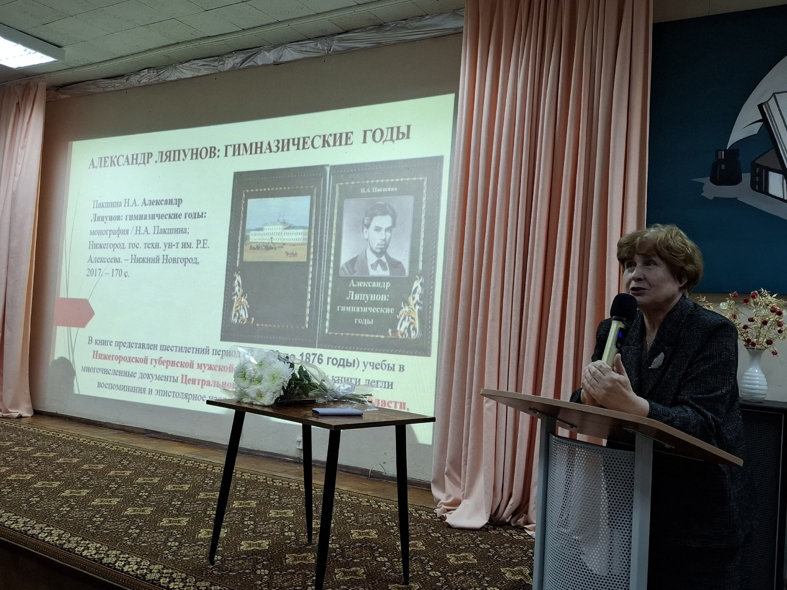 В актовом зале Центральной городской библиотеки им. А.М. Горького 13 ноября прошла творческая встреча городской общественности с Натальей Алексеевной Пакшиной. Встреча состоялась по инициативе заведующего сектором проектно-исследовательской работы ЦГБ им. А.М. Горького, кандидата филологических наук, члена Союза писателей России и председателя Арзамасских отделений Союза писателей России и Российского военно-исторического общества Юрия Александровича Курдина.