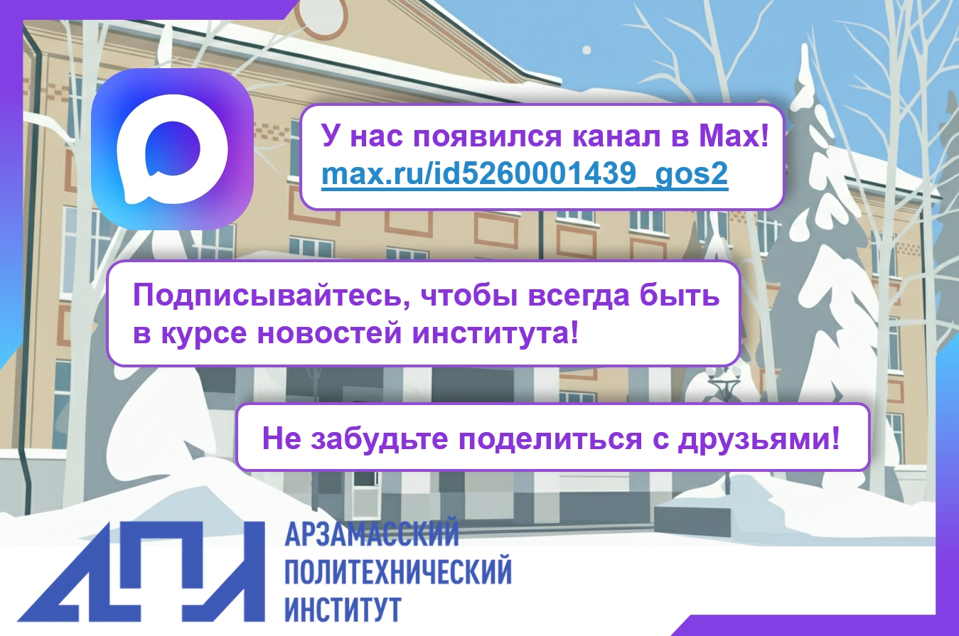 Отличные новости, друзья! Теперь у Арзамасского политехнического института Нижегородского государственного технического университета им. Р.Е. Алексеева есть свой канал в MAX!